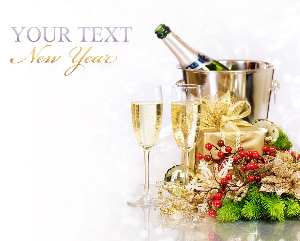 Champagne and Gifts.New Year Celebration.Isolated on white
